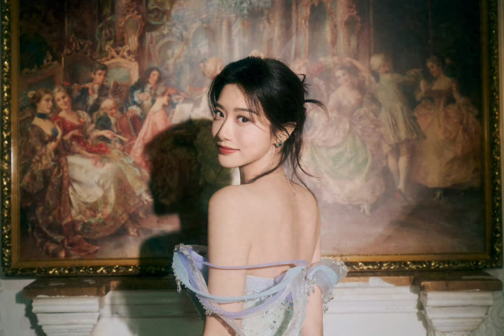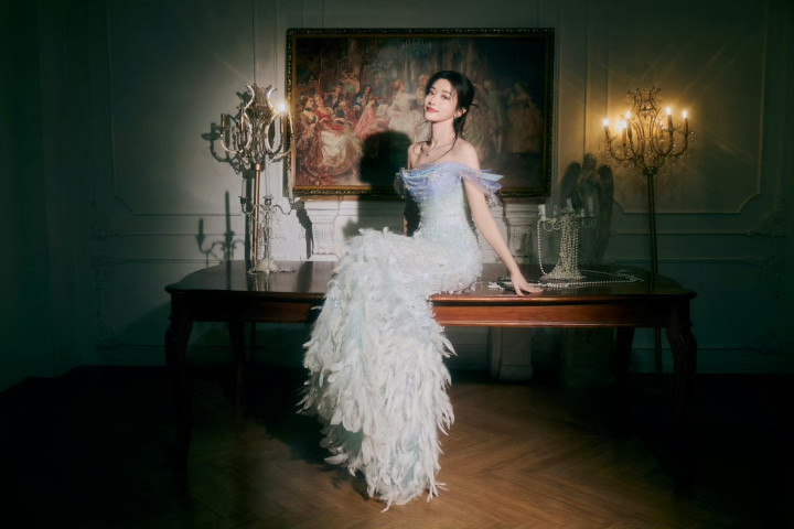 > 孙雪宁羽毛礼裙衬得身姿翩然如蝶